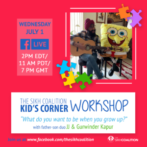 The Sikh Coalition Kid’s Corner was a virtual learning series featuring diverse and inclusive materials. During the height of the COVID-19 pandemic, when many schools and summer activities were closed or postponed, these online sessions brought kids and parents from across the country together to stimulate learning through a range of interactions with literature, music, and art. Catch up on every Kid’s Corner episode below!